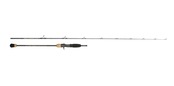 5104は、急潮ディープエリアの二枚潮、三枚潮が発生する状況において、450gまでのヘビーウエイトジグを使用してハイスピードジャーク&コンビネーションジャークを行うため、高弾性素材を使用。しかし、曲がらないロッドではなく、復元力を利用してジグを操作することを前提としている。硬いだけのロッドではジグの弾きが強く動きすぎてしまい、せっかくジグに興味を示した魚を怯えさせてしまう。5104は水深が深くなってもジグを動かすタイミングが掴みやすく、450g前後のジグを軽い入力で浅い水深と変わらない感覚で軽快に操作できる