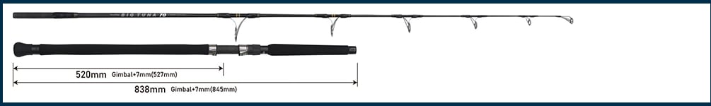 グリップ長 / 838mm(グリップ全長)・520mm(グリップエンドからリールフットまで)